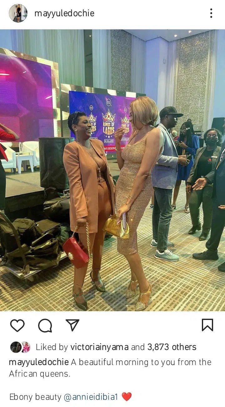 May Yul Edochie, first wife of actor, Yul Edochie has delighted her fans with a stunning photo of herself and actress, Annie Idibia.